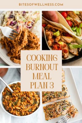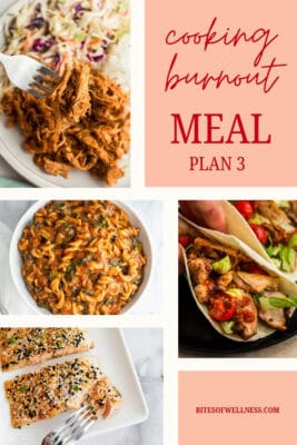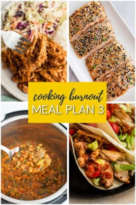 Remember, you don’t have to cook every night or follow this plan perfectly for it to be helpful. These meal plans are here to support you, not pressure you. If you need more easy dinner ideas, you can explore past Cooking Burnout Club meal plans and pull what works for you this week.
