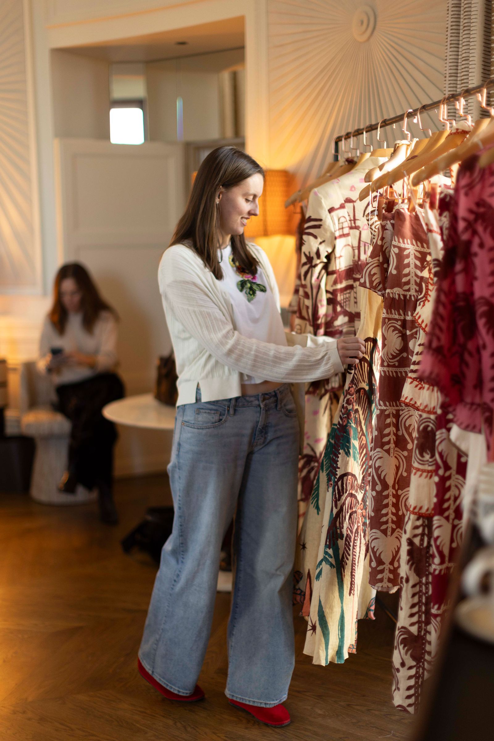 As guests were ferried via elevator to the sprawling penthouse, they were greeted with Champagne and spicy margaritas. Among them: Zoey Deutch, Rebecca Rittenhouse, Kathryn Gallagher, and Kasmere Trice Stanfield, who mingled alongside Matt Bomer, Sophia Bush, and Frame co-founder Jens Grede. Designer Jonathan Simkhai circled the room while models Hilary Rhoda and Staz Lindes held court. DJ Ella Balinska kept the music—and the energy—running loud.