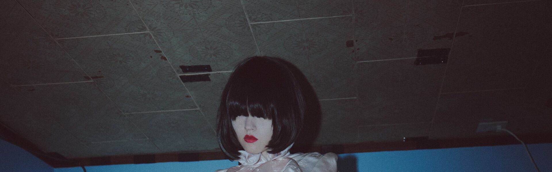 Sakabe is a big horror fan, and had been thinking about how to forge a connection between Japanese horror and fashion. “Even as an adult, entering a place like that—a slightly eerie room—can easily transport you into that unique world, which I find fascinating,” he said. “I feel that horror is the easiest way to enter a fantasy world.”