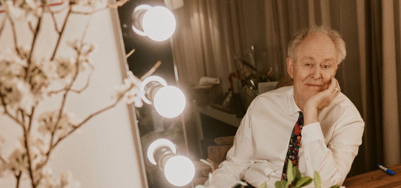 Tall, balding, and bespectacled Lithgow’s Dahl is almost more creature than man, his bowed, puppet-like physicality resembling the Quentin Blake drawings that populated the covers and pages of his stories. The room in which the entire play takes place is meant to be under renovation, the stage littered with ladders and plastic tarps and scored by the sounds of hammering and drilling. It’s a fairly suffocating environment—not least because of the uncomfortable confrontations taking place there.