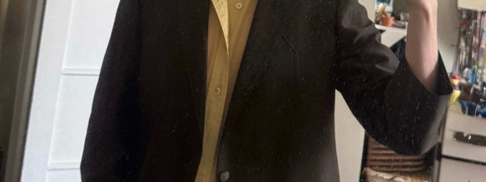 Intrigued by this quirky approach to layering (and in desperate need of a new sartorial vibe), I decided to put the trend to the test. For my first attempt, I looked to the fall 2026 Celine show for inspiration, pairing my finest yellow dress shirt with a brown blazer.