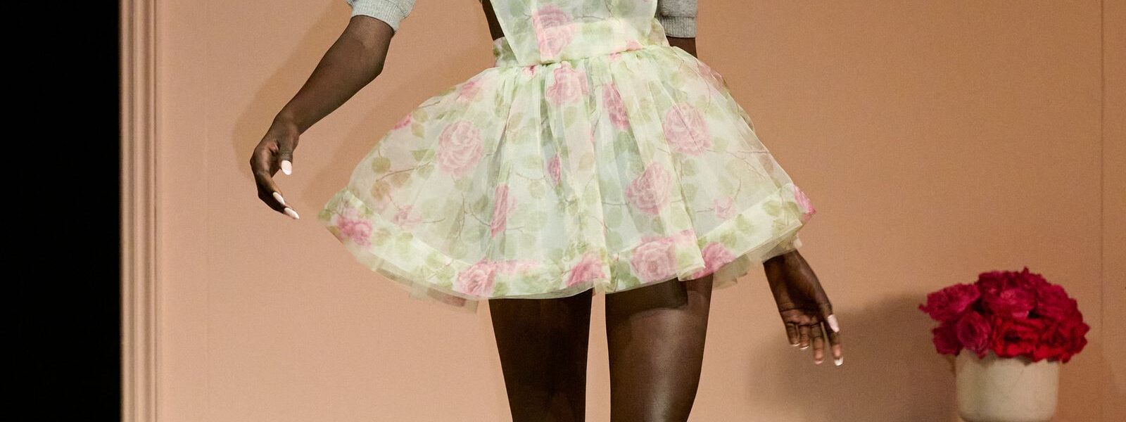 The actor, who stars as the iconic Princess Peach in The Super Mario Galaxy Movie, stepped out for a press event in Osaka, Japan wearing a rose and green floral mini apron dress by August Barron. The dress, from the brand’s “Real Housewife” spring 2026 collection, features a soft pattern, halter apron straps, and a flippy, sheer skirt. Styled by Ryan Hastings, she also wore dusty pink, pointed open-toe sandals and several Tiffany&Co. rings. Leaning more into the supremely feminine aesthetic of Peach, she wore her icy blonde hair half-up, half-down with a brick red lip and matching nails.