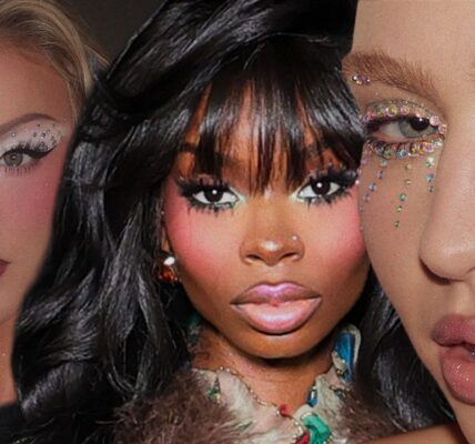 Of course, in the world of Taylor Swift, nothing’s a coincidence. For her appearance at the iHeart Radio Music Awards, she hearkened back to the green-and-orange motif that surrounded her latest album, The Life of a Showgirl, in a seafoam-green corseted mini dress, ditching her signature red lip for something more natural and peachy.