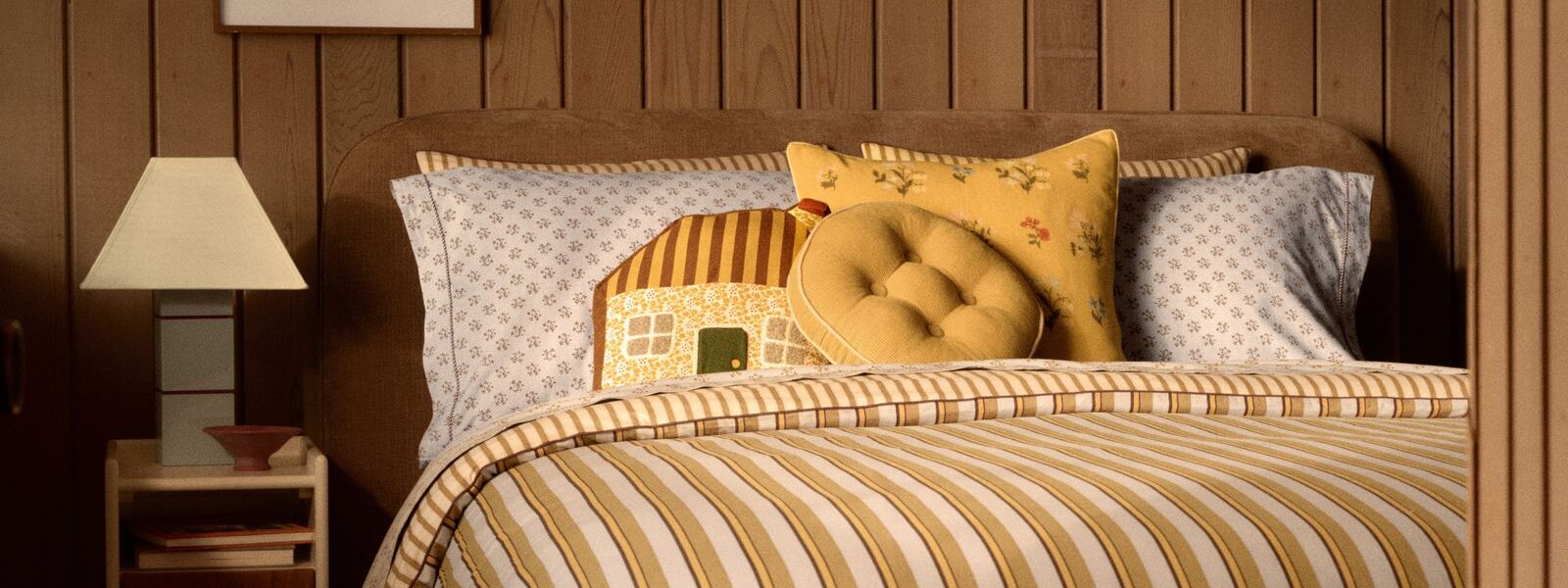 “I would say it’s eclectic, inviting, and lighthearted,” Chamberlain continues. “There’s a lot going on at once, which is very much my decor philosophy, and it doesn’t take itself too seriously.” Those looking for solid investment pieces to ground a room will find a polished dining table and a comfortable couch in a classic silhouette (inspired by the very one Chamberlain naps on every day). Of course, it’s also peppered with tongue-in-cheek decor, like a pigeon-shaped pitcher and a bird-footed fruit bowl.