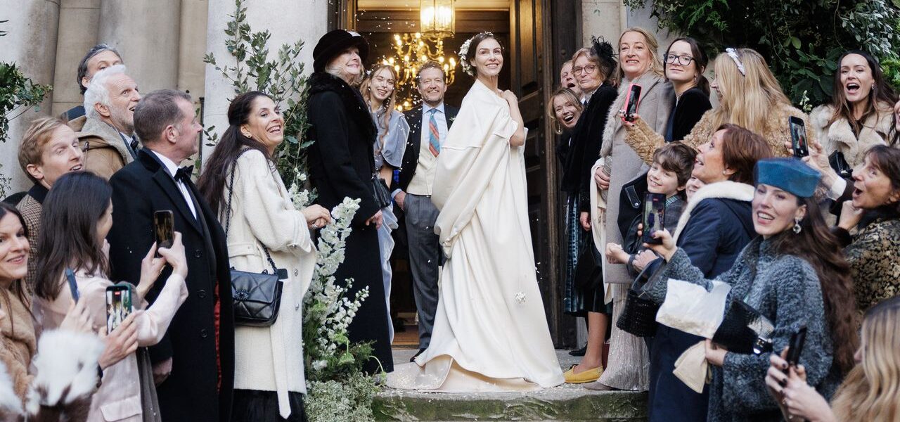 It’s almost inconceivable to think now that Oda Jaune and Robin Scott-Lawson might have gotten married in Hydra or Scotland, two destinations that were originally posited. As the couple notes, their London wedding—staged at the Painting Rooms, the home of Scott-Lawson’s creative event production company, My Beautiful City, and 180 the Strand—was so resolutely them. “Our love story is here,” says Robin, who first met artist Oda at one of her show openings.