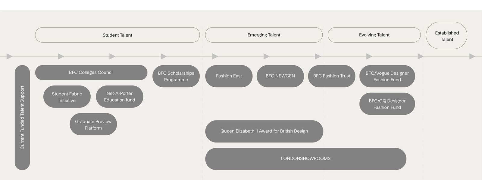 She is doing the same with the BFC. Her 2030 strategy is being unveiled today, though I had the chance to study the 64 slides ahead of this interview. The thing that stands out the most throughout is an intention to label and explain things clearly, while also reangling certain narratives. One such example is London’s role as a talent incubator, which has historically been perceived as less than positive, with designers often flying the coop for the bright lights of Milan or Paris (see: Jonathan Anderson, Grace Wales Bonner, Kim Jones, Louise Trotter, John Galliano, and the list goes on).