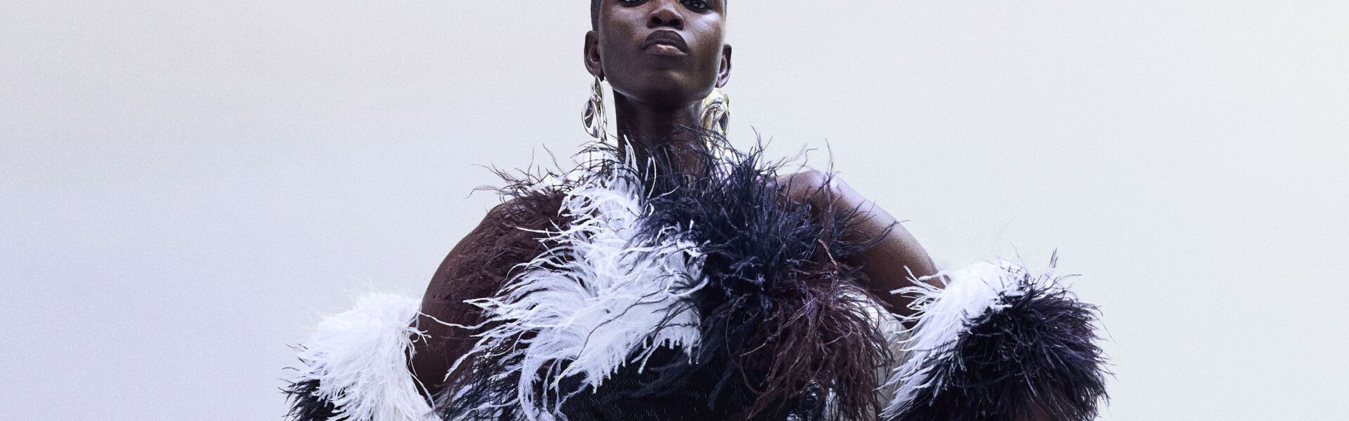 The closing look was a long black gown and matching evening coat, both covered in rooster feathers with an oil slick-quality to them. It was all very Maleficent—fitting for a Disney villain, if you will. “This [season] was for me to play,” Khan said.