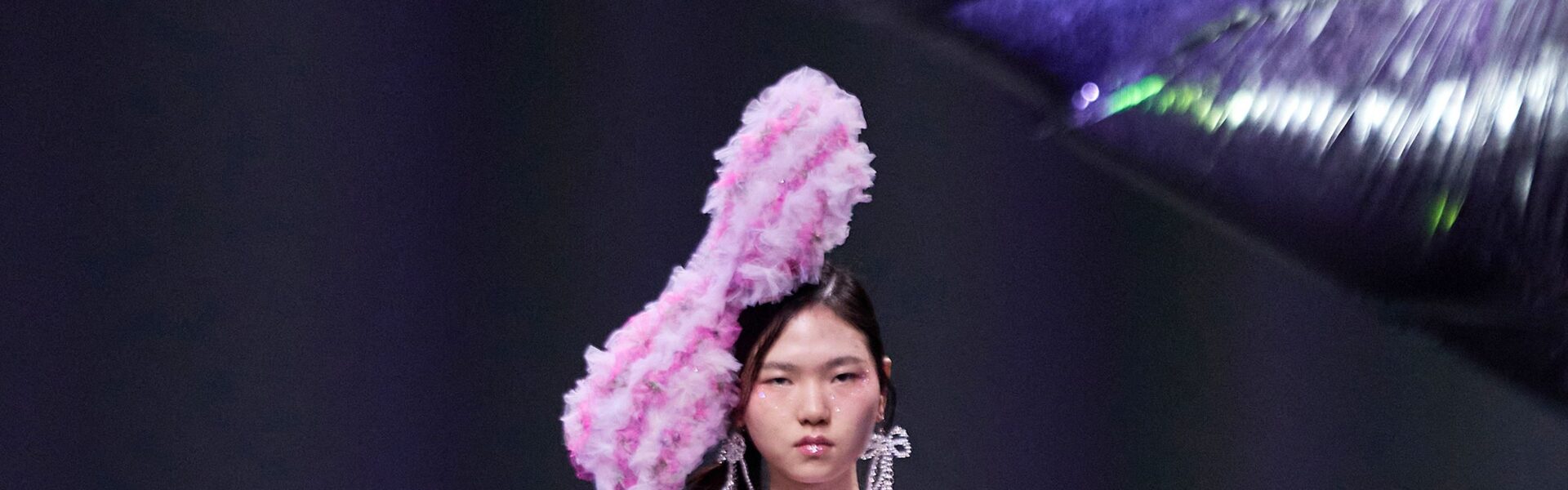 This rationale lent Fang coherent license to hop back and forth across history, plucking silhouettes from the 19th century, the mid-20th century, and the 21st century. She also flitted between contexts, presenting bridal-leaning looks and ballet tutus against daywear swathed in ski-sourced, sculpturally arranged down-filled panels. What connected them all was the aesthetic of ethereality she tried to conjure through the opaque lightness of her chiffon, tulle, and resin materials, and the cutesy, slightly saccharine sentiment telegraphed by the pastel color story and the plentiful use of embellishments shaped after lucky clover flowers, peach blossoms, and bows.