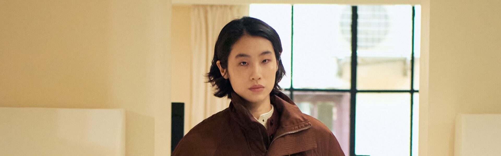 Samuel Gui Yang was speaking alongside his co-founder and co-designer Erik Litzen. The show just finished demonstrated the breadth of a design dialect refined for over a decade, conceived through a pronouncedly Chinese accent, and conjugated according to a contemporary European fashion grammar. The London-based 2020 LVMH Prize semi-finalists and former CSM classmates are exploring a similar liminal space to that of their fellow Shanghai Fashion Week label AO Yes, but from a different direction and distance.