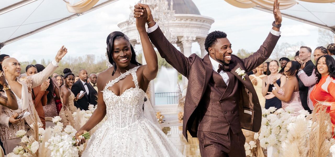 The couple decided to tie the knot on April 4, 2026, at The Conservatory at Blackberry Ridge in Trenton, Georgia. Junelle describes wedding planning alongside her planner, Rebecca Lang of L3 Events, and Noah as very easy. “Usually all I do is confirm ideas and might give my input here and there,” she says. Noah says it was a little less easy on his end. “I found myself being more of the planner than I thought,” he says. “I see myself as somewhat of an artistic director.” One of the biggest challenges of planning was understanding the cultural differences of weddings in the United States and Jamaica, where Junelle is originally from. He also says there were some surprises when it came to crafting the budget—especially as the smaller items began to add up. “I’d say thank the lord for Rebecca,” the runner says. “We’ve received tremendous amounts of favors from different companies and people that are all extremely skilled and at the height of their craft, offering their services that we just didn’t expect. We’re just very blessed.”