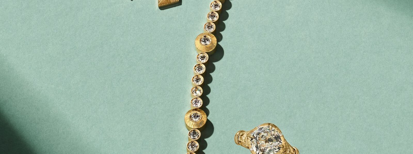 While Lubeck’s work is still hard to come by, it just got a little bit easier thanks to her new line, Artifex Bridal by Kindred Lubeck. On April 10 at 4 p.m. EST, Lubeck will drop a new, limited edition collection of engagement rings, wedding bands, and other fine jewelry intended to carry a bride through her engagement and beyond. Among them, a wedding band with channel-set baguettes and a milgrain border, a tennis bracelet with a hand-engraved sunburst motif and invisible clasp, and—a favorite of hers—a 3.63 carat old mine diamond surrounded by an engraved halo accented with smaller diamonds, and a looped detail on the band.