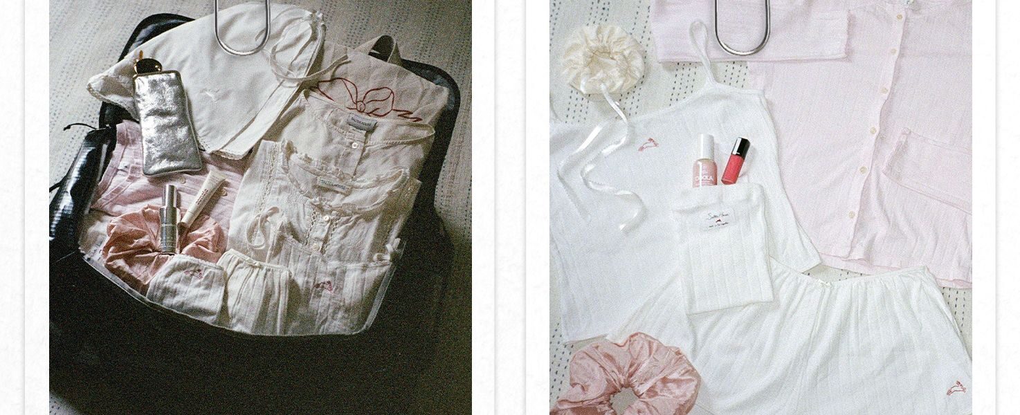 “I tend to pack in color schemes, with a pretty clear idea of how I’ll pair things,” she explains. “And shoes that match it all.” For a trip to Tulum, the planned palette in question is simple: Ivories and blacks for the base, with shades of pinks popping in to break up the neutrals. The fabrics are apropos for a beach holiday—think crisp cotton shorts, gauzy silk-cotton blend dresses, and lightweight pointelle layers for wrapping up on chillier evenings. On the whole, her travel edit is laid-back (Salter is heading down to Mexico for a family trip, with her sister coming in from Copenhagen and her parents joining as well) but with a few star pieces to dress up and down. Relaxed, but polished; not unlike the very nightgowns that started it all.