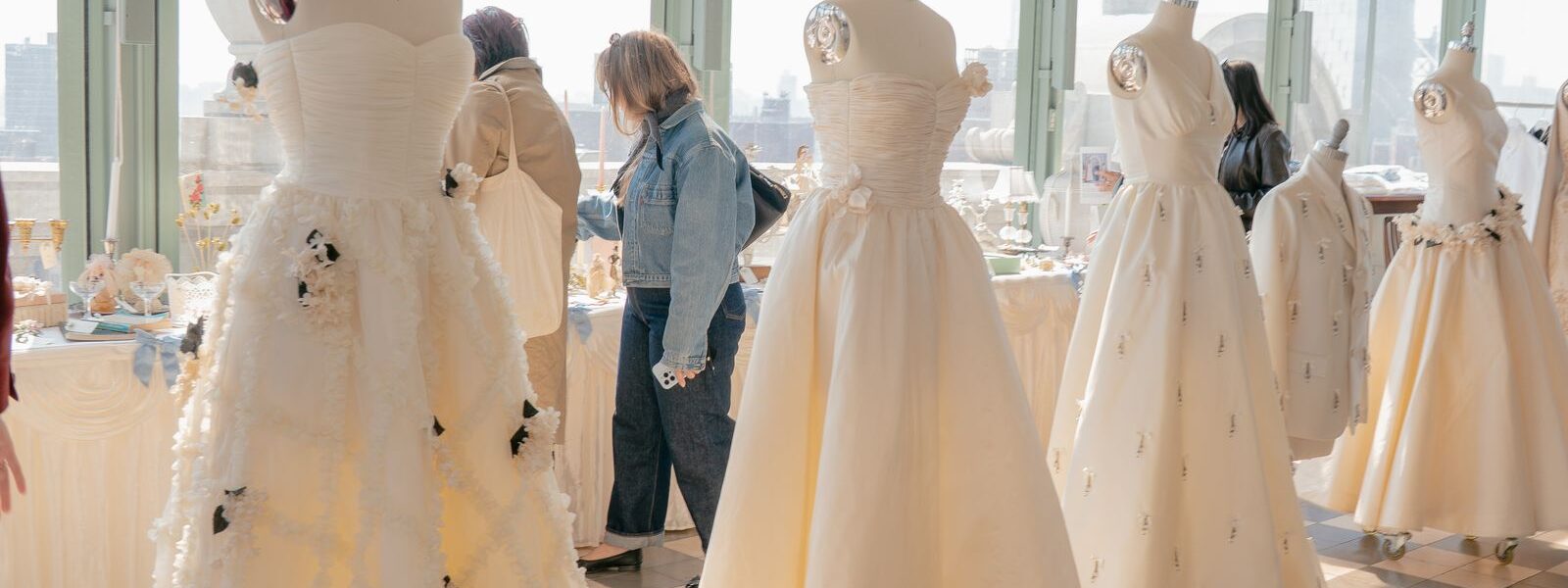 While the presentations of New York Bridal Fashion Week showcase garments for buyers, press, and members of the wedding industry, recently engaged designers Tanner Richie and Fletcher Kassel of Tanner Fletcher decided to host a special event for those actually about to tie the knot. On Friday, April 10—the last day of a very busy bridal week—the coupled creatives brought a handful of Etsy wedding vendors (as well as their newly debuted wedding and event fashions) to the rooftop of Nine Orchard on the Lower East Side for a wedding fair that was open to the public.
