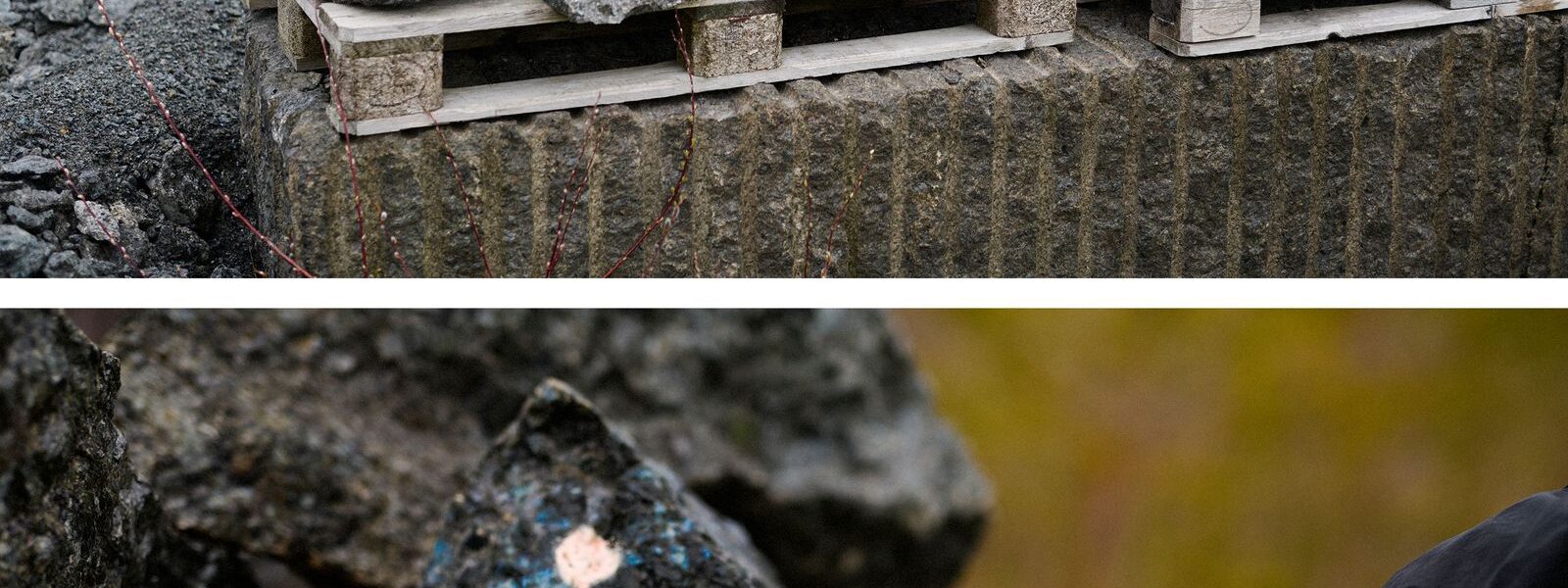 Tom Wood uses larvikite sourced from the Lundhs quarry in Larvik, Norway. Larvikite is the national stone of Norway.