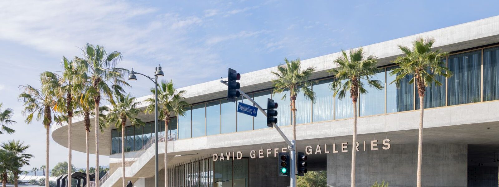 The new David Geffen Galleries at the Los Angeles County Museum of Art do not so much sit on Wilshire Boulevard as hover above it, a long, blobby concrete structure stretching across the street, held aloft by gargantuan, widely spaced cores. At ground level, the building feels almost improbably large, much of its underside shaded.