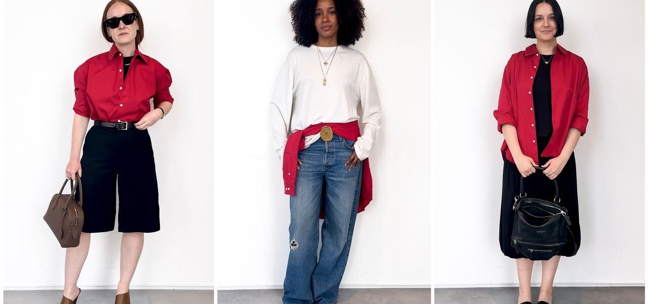 At Vogue, everyone has a distinct point of view, but each editor was drawn to Comme Si’s crimson shirt to kick off the series. Over the last few seasons, red has steadily taken over the runways and street style, offering an easy way to punch up an outfit with a bold flash of color. Worn as a shirt, thrown effortless over a matching set, or tied at the waist, it proves its ability to be more than one thing. See how each editor made it their own.