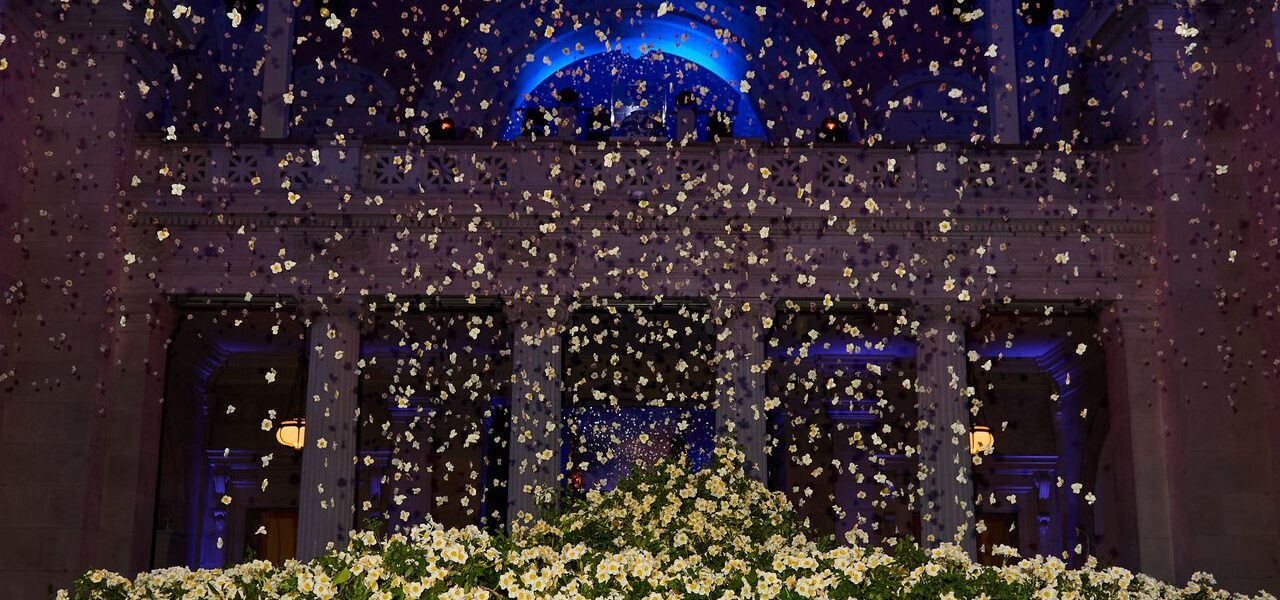 In 2024, Ávila and the Vogue special events team turn the Temple of Dendur into an enchanted forest. Last year’s event—“Superfine: Tailoring Black Style”—took inspiration from famed artist Cy Gavin’s narcissus flower motif, which was a nod to “self-recognition,” and sparked a floating tower of narcissus flowers as the Great Hall centerpiece.