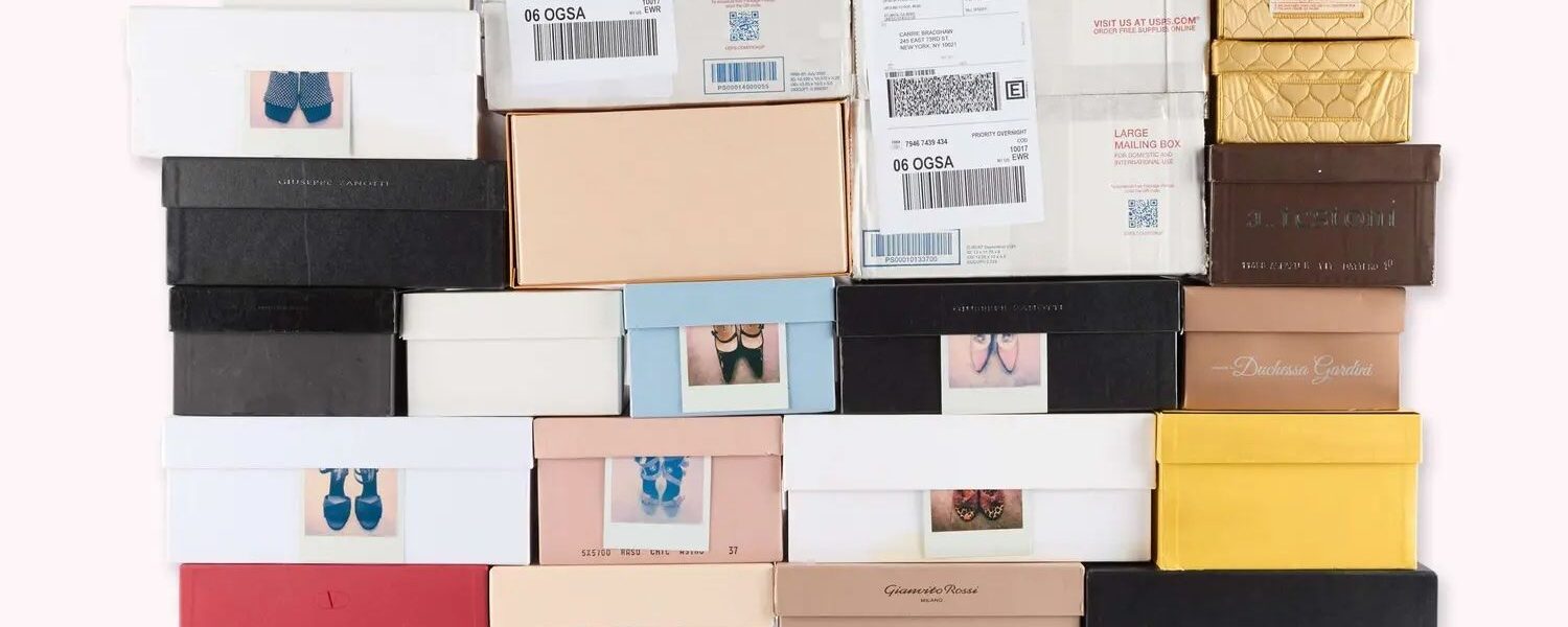 Those mountains of boxes—from Manolo, Louis Vuitton, Valentino, Prada, and Fendi—could be yours for a mere $250. (The pumps are, sadly, not included, though many boxes do come with Polaroid photos of the missing shoes.) There are also boxes of another kind: two USPS parcels bearing Carrie’s Gramercy apartment address.